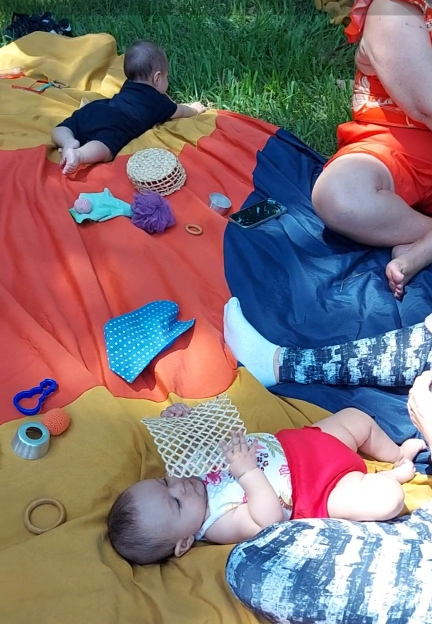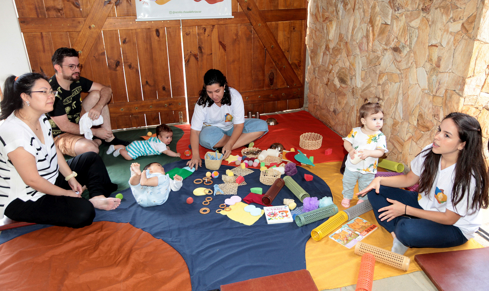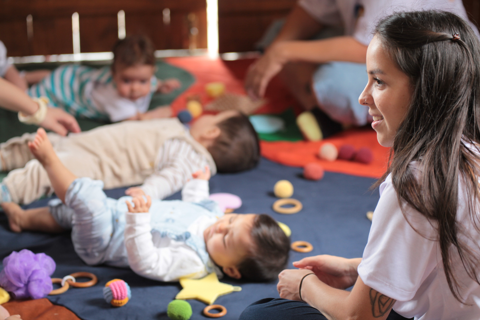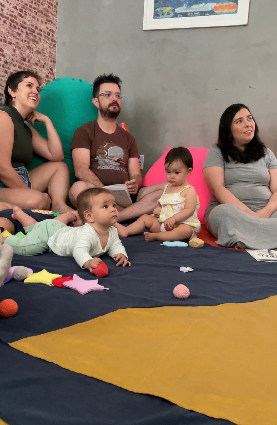 Vivências pautadas no brincar e motricidade livres para bebês de 3 meses até 3 anos acompanhados de um adulto referência.