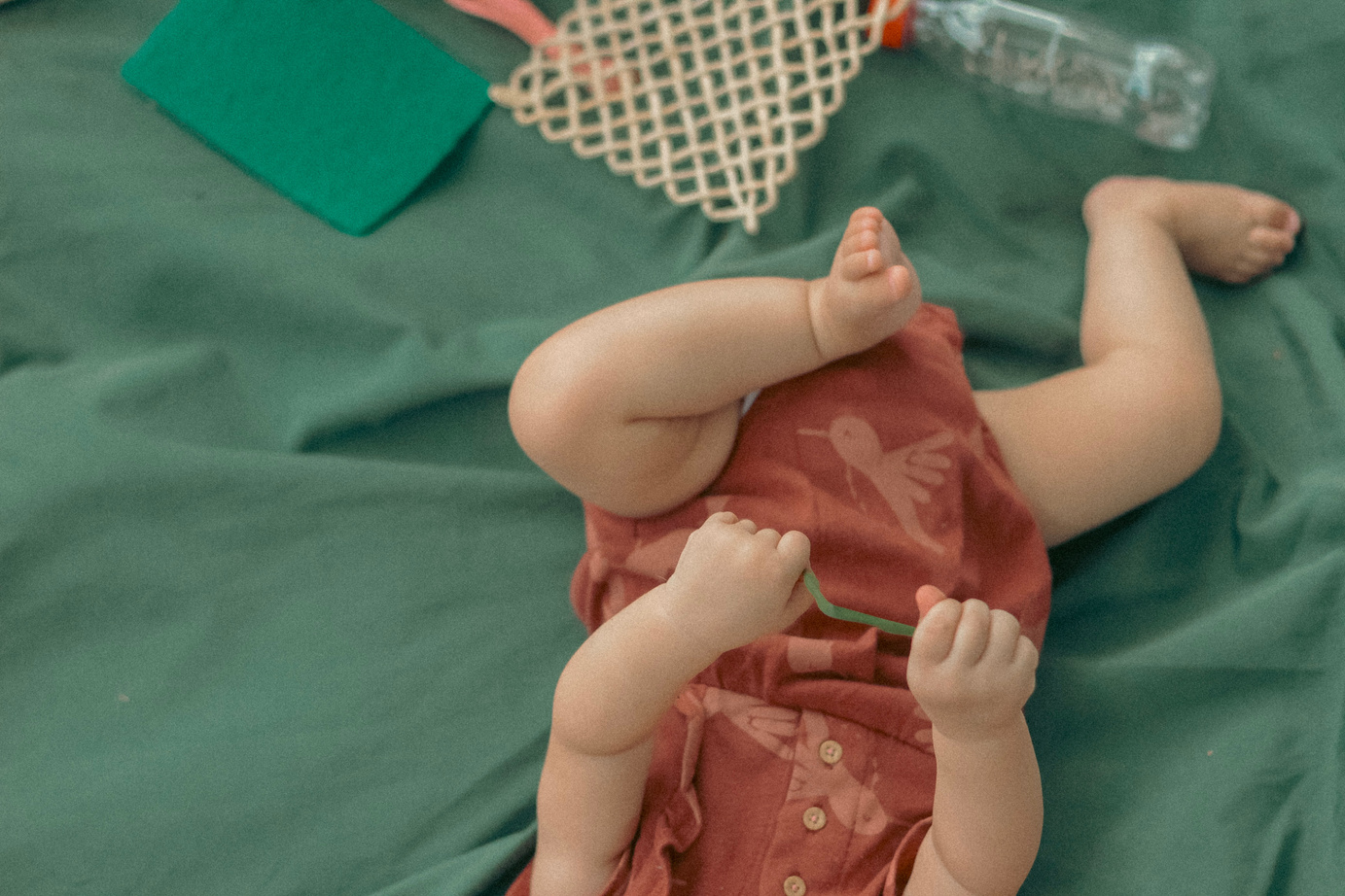 Nosso chão de brincar é cuidadosamente organizado para que o bebê se torne o protagonista, explorando livremente os materiais que foram escolhidos para sua fase do desenvolvimento.